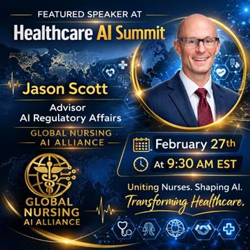 Jason Scott, Advisor for AI Regulatory Affairs at the Global Nursing AI Alliance, will be presenting at the Healthcare AI Summit on February 27 at 9 30 am EST.